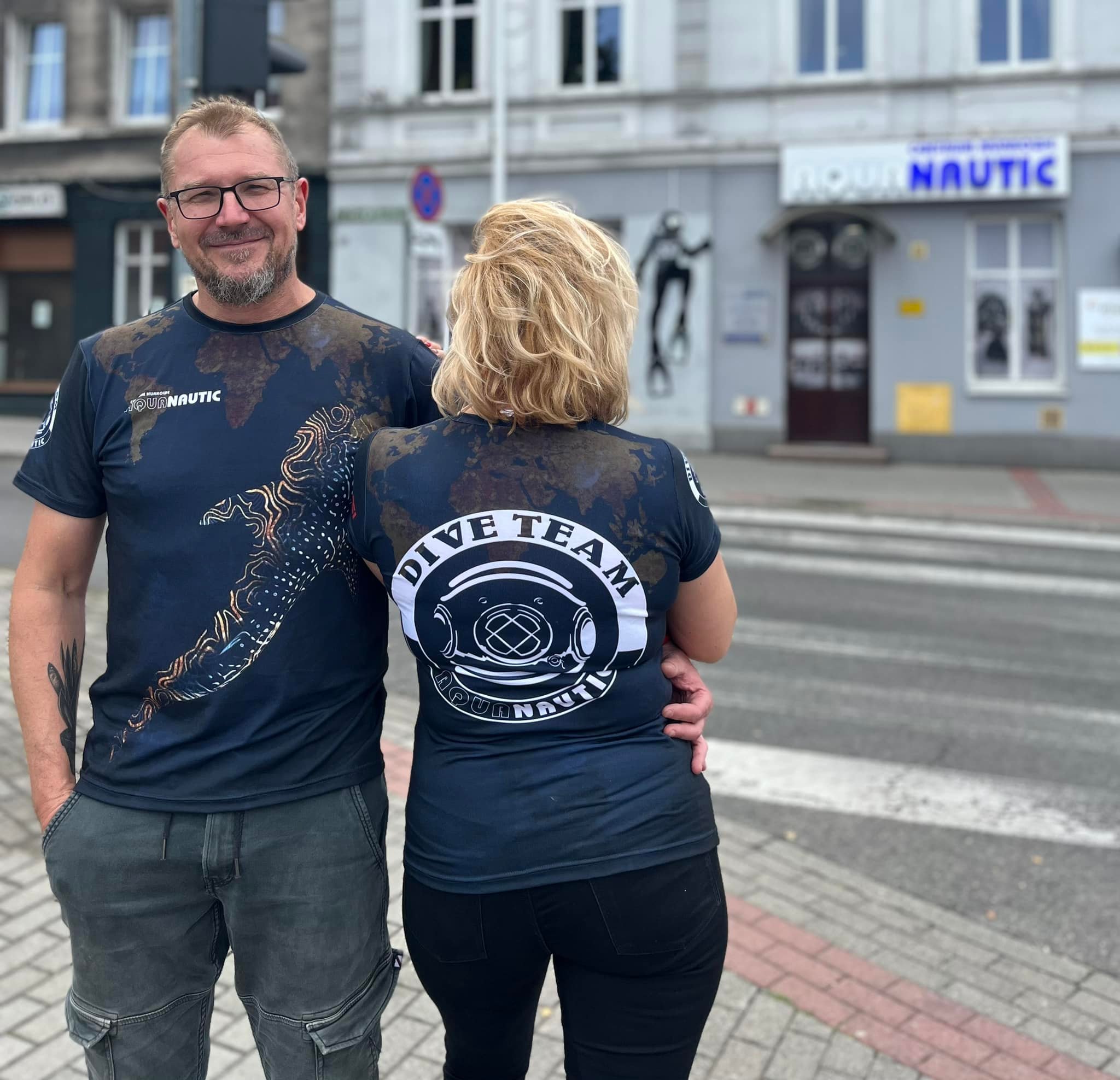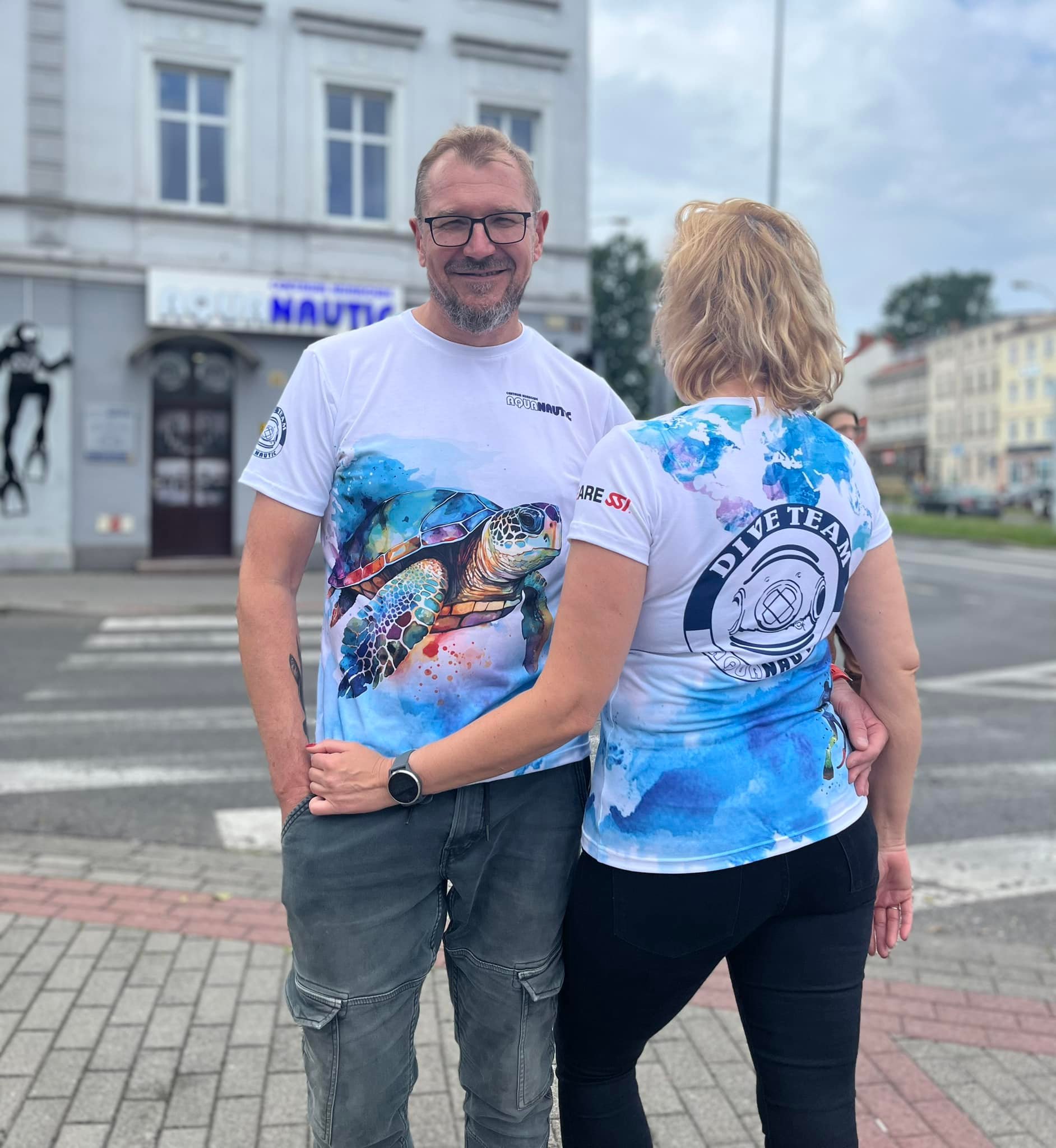 To nie są zwykłe T-shirty. To unikatowe projekty, które powstają specjalnie dla naszej nurkowej społeczności. Nad wzorami pracujemy razem z grafikiem Maciejem, który przekłada nasze pomysły na ekran, a potem na tkaninę. Czasem inspiracja przychodzi zupełnie spontanicznie – i wtedy projektujemy koszulki od A do Z samodzielnie. Każda z nich ma swoją historię, a ta najnowsza jest naprawdę wyjątkowa.