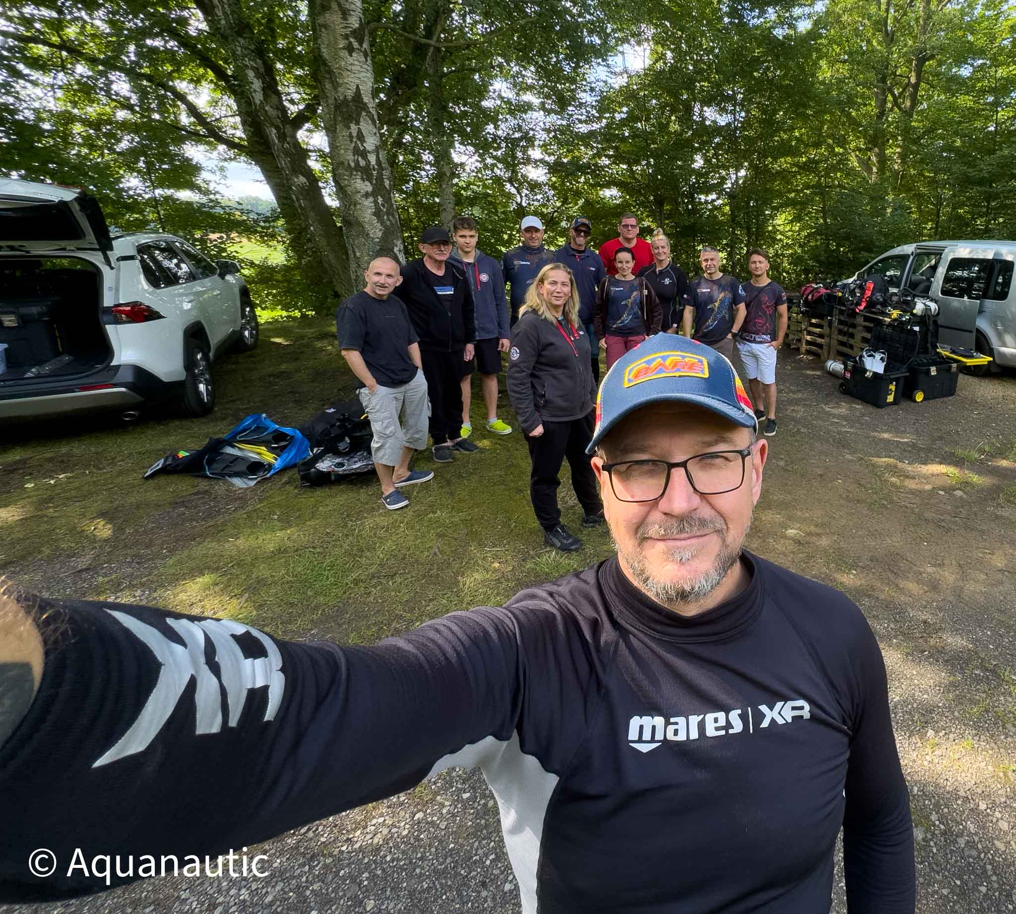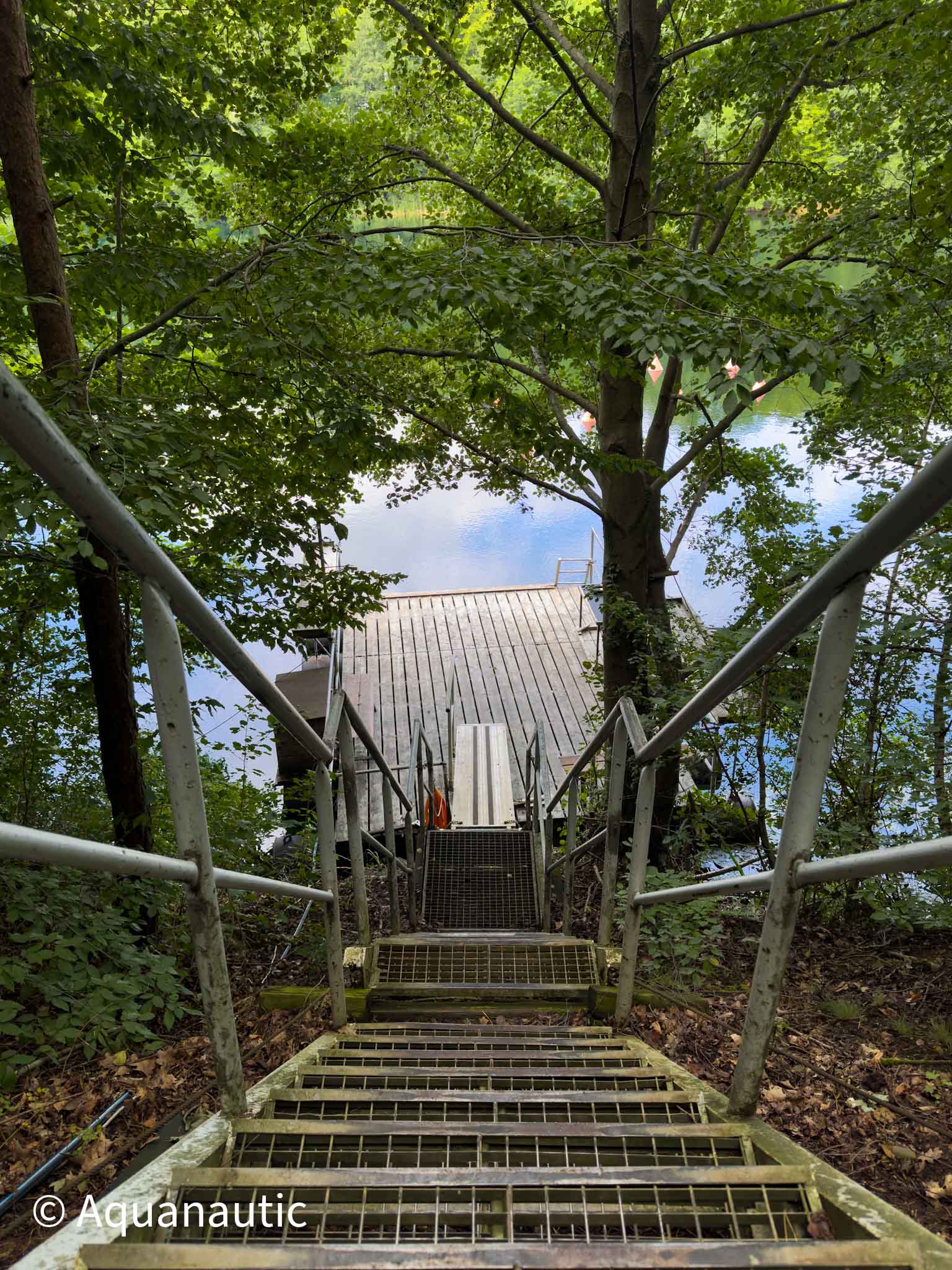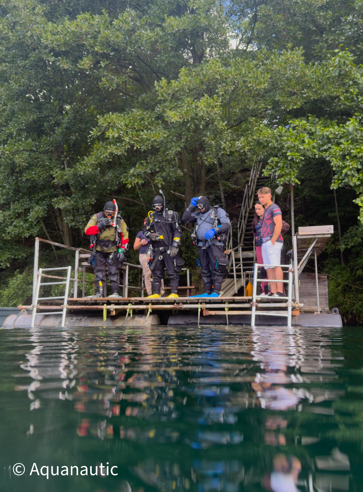 Kamieniołom Wetro (Sproitz) Kamieniołom Wetro to zalane wyrobisko po dawnym wydobyciu kwarcytu i bazaltu, położone w pobliżu miejscowości Sproitz, niedaleko granicy niemiecko-czeskiej. Zbiornik ma charakter typowego kamieniołomu – strome ściany, skalne półki, chłodną wodę i niesamowity, nieco surowy klimat, który przyciąga doświadczonych nurków z całej Europy. Maksymalna głębokość: ok. 56 m Widoczność: zazwyczaj 6–8 m, w chłodniejszych miesiącach bywa lepsza Dojście do wody: wygodne, po metalowych schodkach z poręczami, na dole znajduje się pływająca platforma Otoczenie: brzegi porośnięte drzewami, jedno wejście od strony bazy nurkowej Brzegi akwenu porasta zieleń, co nadaje temu miejscu spokojny, niemal odizolowany charakter. Zejście do wody prowadzi metalowymi schodkami z poręczami, które kończą się pływającą platformą – to wygodne i bezpieczne rozwiązanie, nawet przy cięższym sprzęcie. Dno kamieniołomu jest zróżnicowane: znajdziesz tu zarówno strome ściany schodzące pionowo w dół, jak i łagodniejsze partie z półkami skalnymi i groblą dzielącą akwen na część głębszą i płytszą. Pod wodą czeka kilka ciekawych atrakcji do eksploracji: - zatopiony rower, - miniaturowy zaprzęg konny, - tory kolejki z dużym misiem w masce, - wrak samochodu spoczywający na głębokości około 17 metrów, oraz inne drobne elementy, które tworzą ciekawy, lekko surrealistyczny krajobraz podwodny. W głębszych partiach dno przechodzi w ciemne, surowe skały bazaltowe. To miejsce, gdzie światło szybko znika, dlatego latarka jest obowiązkowym elementem wyposażenia. Dla fotografów i nurków technicznych Wetro stanowi świetną okazję do testów sprzętu i ćwiczeń w realnych warunkach głębokiego nurkowania.