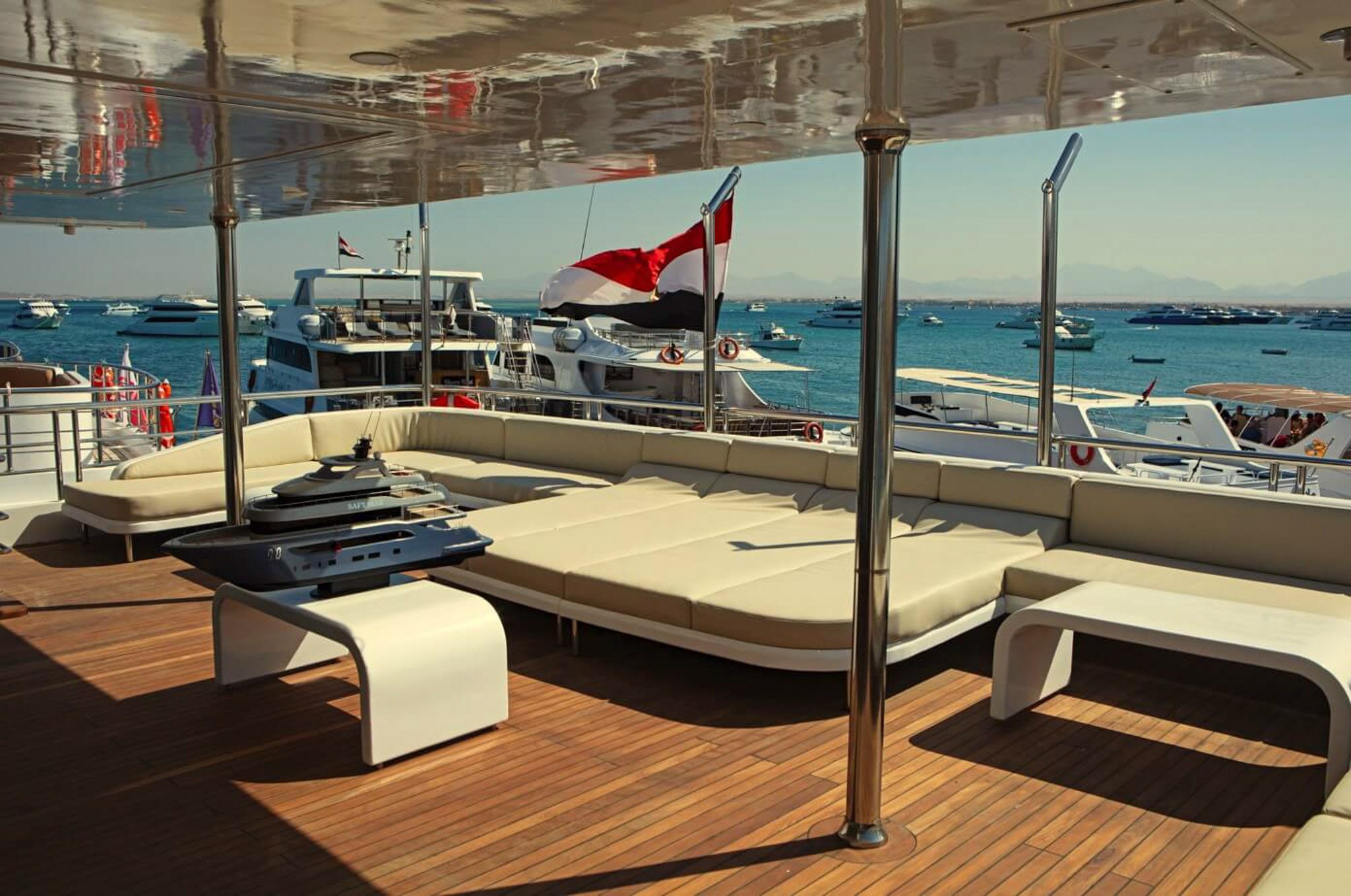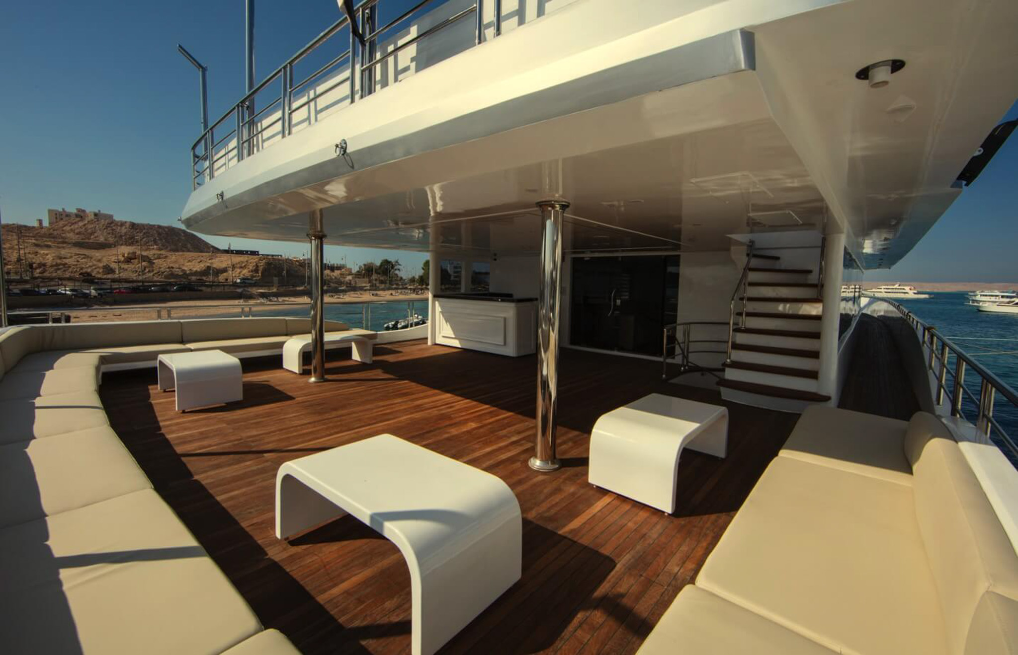 Zbudowana w 2024 roku Safy Mar to nowoczesna łódź safari stworzona z myślą o najbardziej wymagających nurkach i miłośnikach morskich wypraw. Solidna, stalowa konstrukcja o długości 44 metrów i szerokości 9,5 metra oferuje przestrzeń i stabilność, które w połączeniu z komfortem butikowego hotelu tworzą idealną bazę do nurkowych przygód na Morzu Czerwonym.