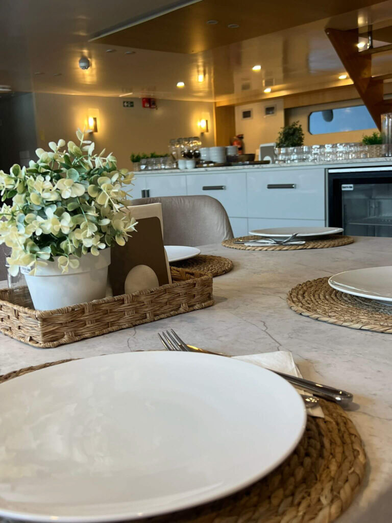 To pływająca przystań dla 34 gości – miejsce, w którym intensywne nurkowania płynnie łączą się z odpoczynkiem, relaksem i dbałością o każdy detal. Safy Mar została zaprojektowana w oparciu o najlepsze rozwiązania znane z topowych łodzi safari, uzupełnione nowoczesnym podejściem i wyjątkową ergonomią.